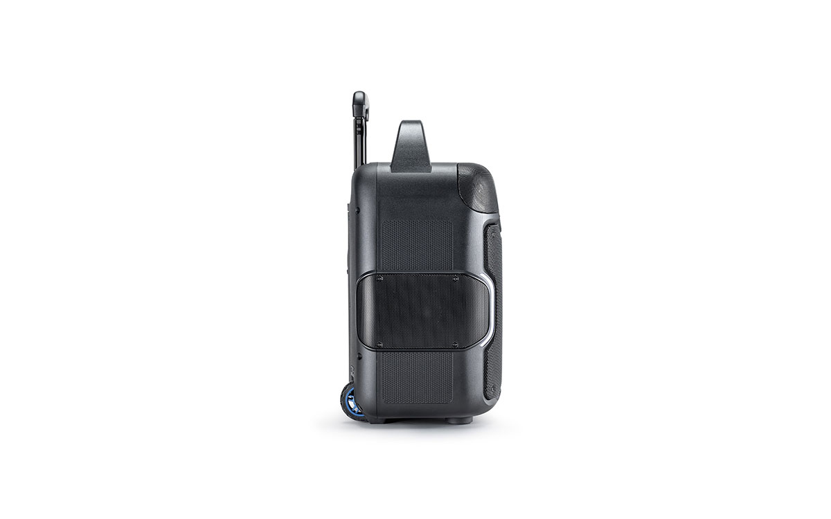 Uber FX MK2 is incredibly easy to transport with its telescoping handle and wheels; it also has a handy top storage compartment, side bottle opener and front panel lighting. There are also two USB charging ports to keep your devices topped up.